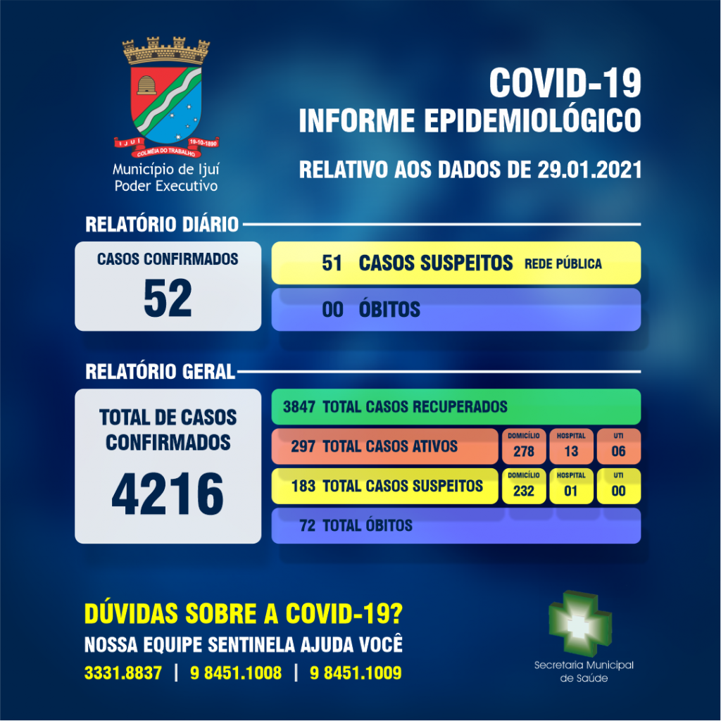 Secretaria Municipal da Saúde comunica boletim epidemiológico da Covid-19 em Ijuí