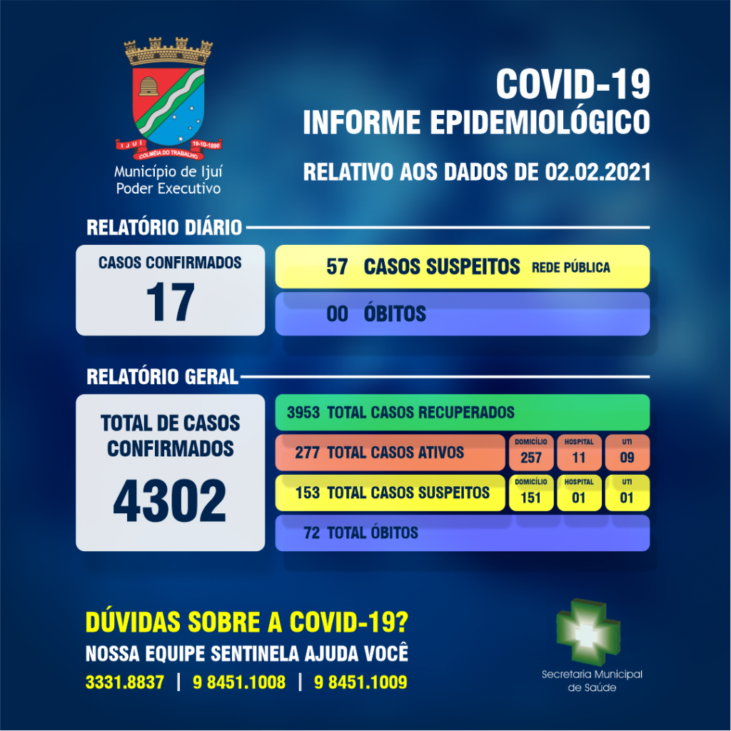 Secretaria Municipal da Saúde comunica boletim epidemiológico da Covid-19 em Ijuí