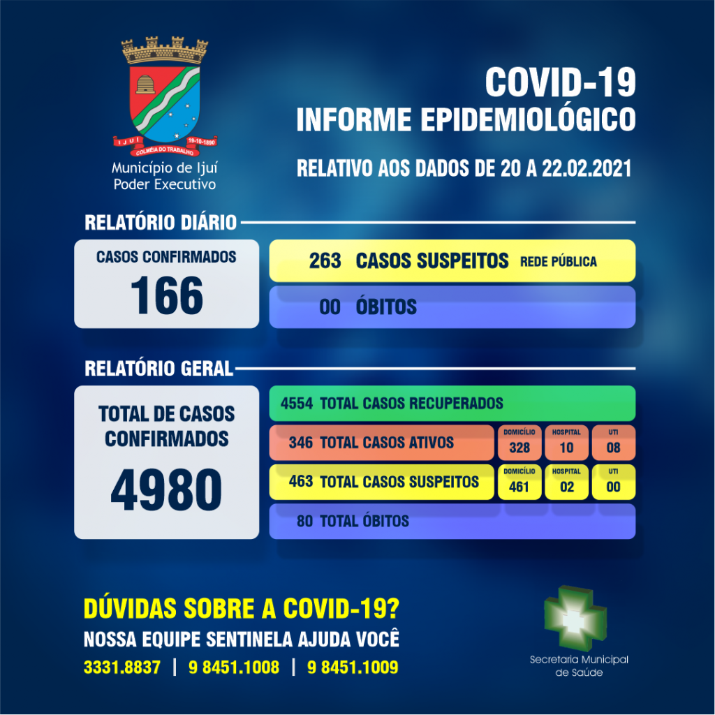 Secretaria Municipal da Saúde comunica boletim epidemiológico da Covid-19 em Ijuí
