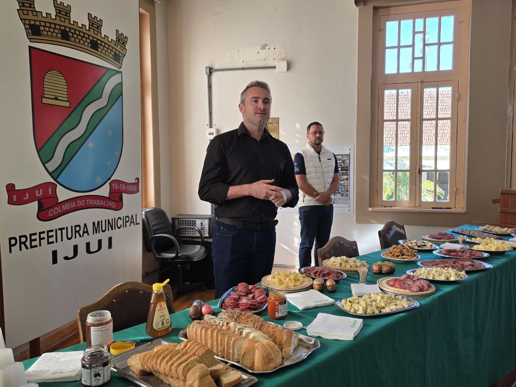 Com um café colonial, repleto de produtos da agricultura familiar, autoridades, produtores rurais e representantes da imprensa participaram, na manhã desta sexta-feira (04), no Salão Farroupilha da Prefeitura de Ijuí, do lançamento oficial da edição de abril da Feira Estadual da Agroindústria Colonial – Fecolônia.