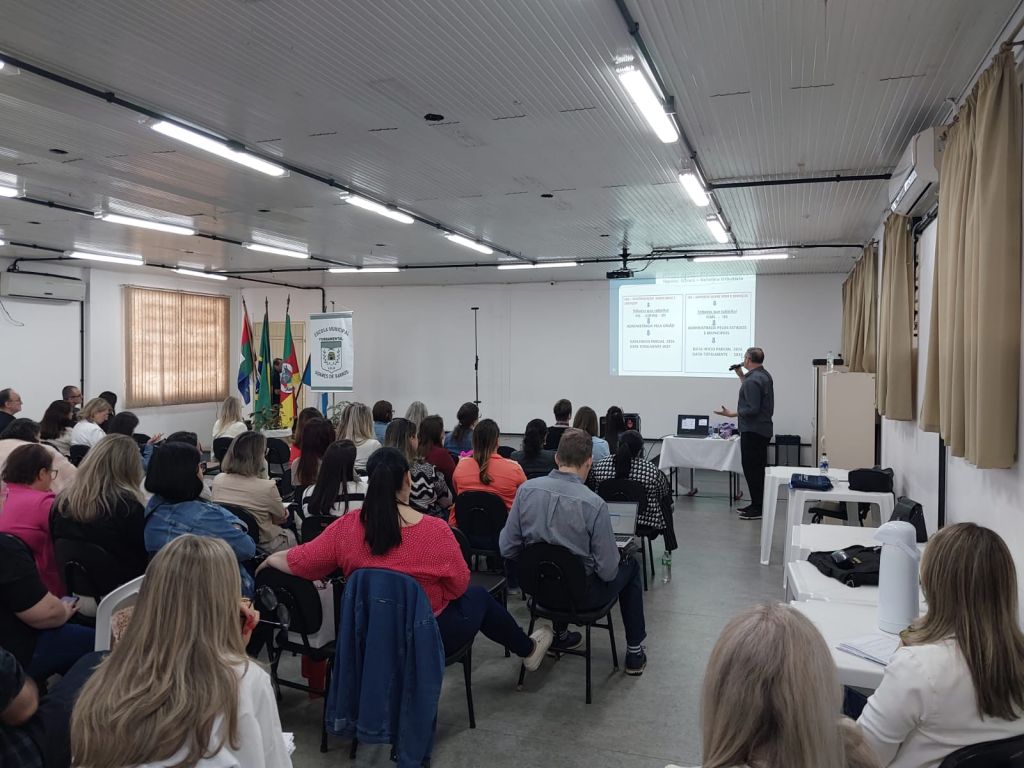 Com o tema “SAERS e a relação com recursos municipais”, a palestra foi conduzida pelo senhor Wilmar de Souza, da empresa Essencial Assessoria, e abordou a cota-parte do retorno do ICMS referente à área da educação.