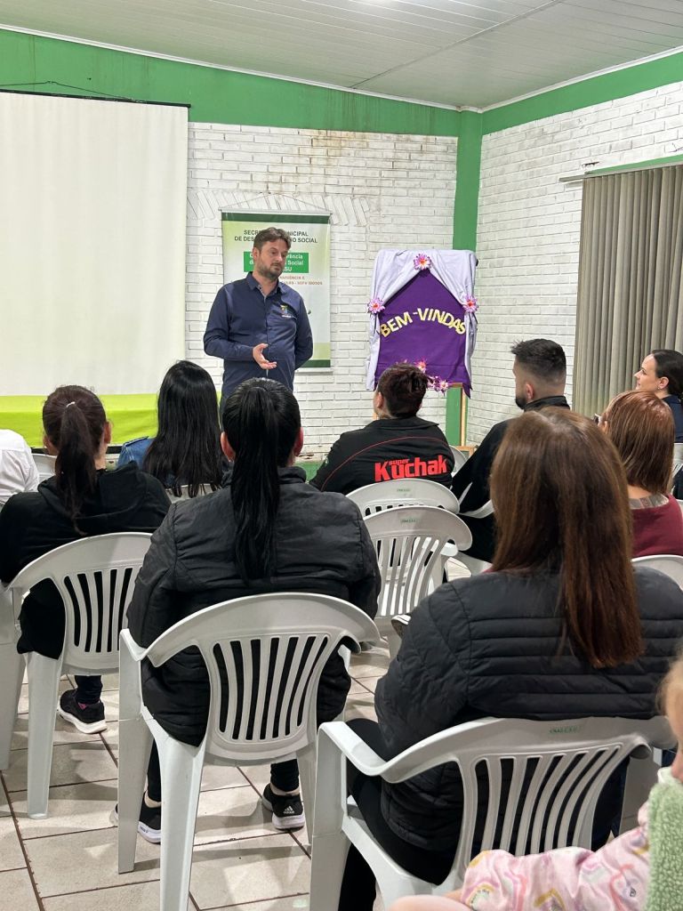 Nesta terça-feira (29), a Escola Municipal Infantil Dalva de Almeida Weinmann promoveu uma roda de conversa com os pais das turmas dos maternais. A atividade contou com a participação do psicólogo da Secretaria Municipal de Educação (Smed) Daniel Ruwer, que abordou os efeitos do uso excessivo do celular no ambiente familiar e no desenvolvimento infantil.